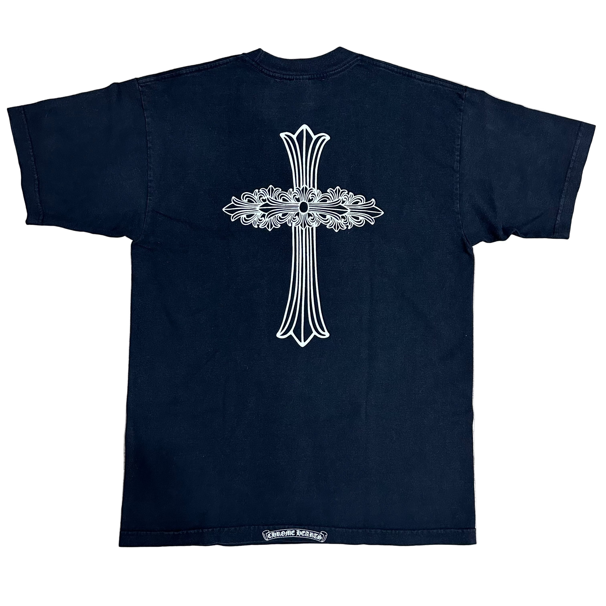 Chrome Hearts Floral Cross Neck Logo Black Pocket Tee